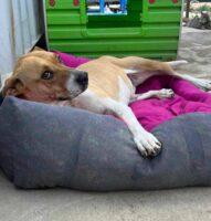 Verträglich mit Katzen, genießt die Streicheleinheiten und jegliche Aufmerksamkeit des Menschen.