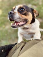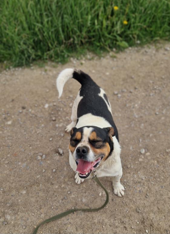 Er hatte Glück, denn eine Freiwillige aus dem Tierheim fand ihn, als er sich an einen Stein im Feld gekuschelt hatte (Bild 1 unten). Er bekam eine Chance.